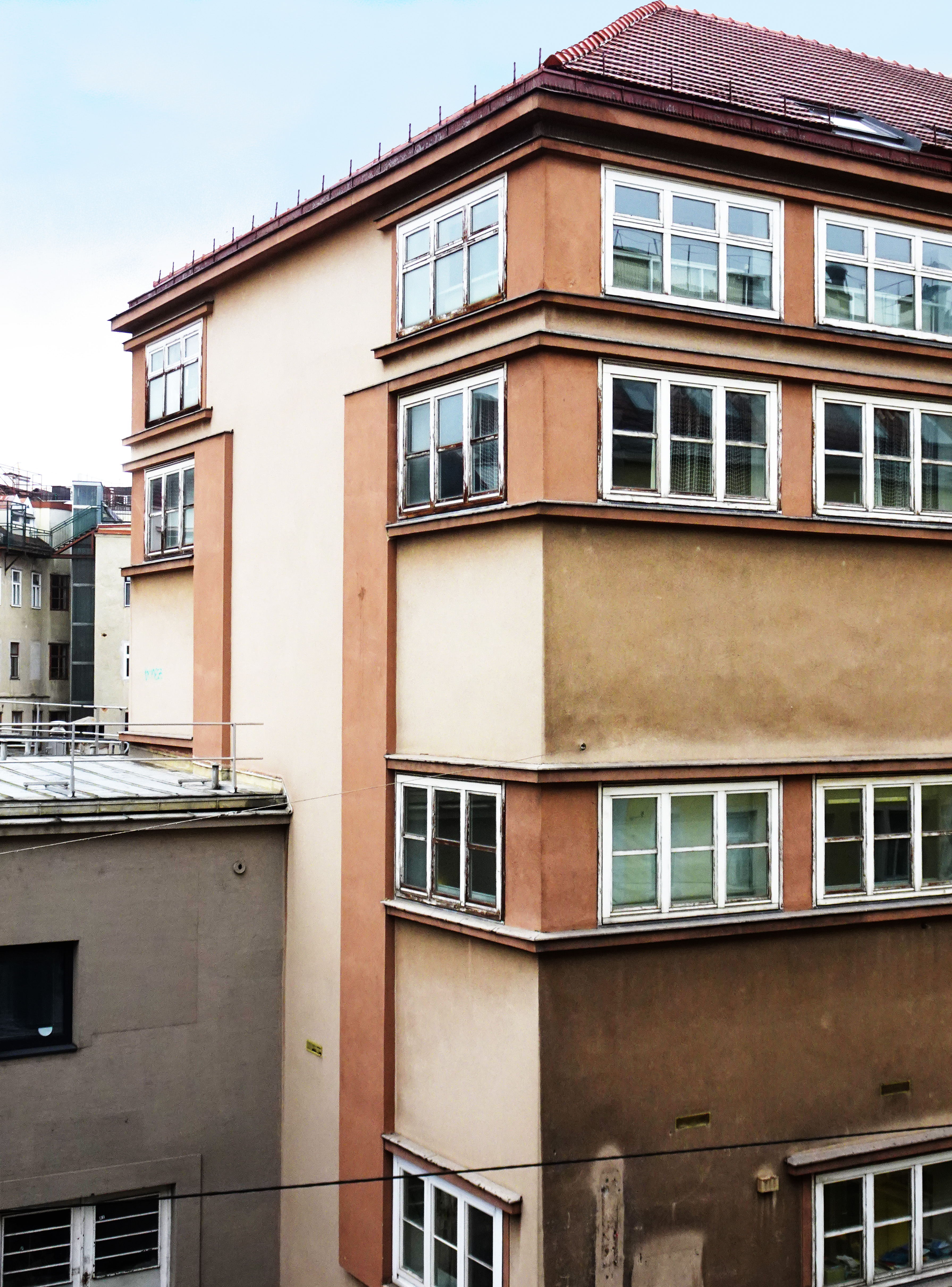 Gebäudes in der Aichholzgasse 52, einem ehemaligen Tröpferlbad der Stadt Wien. Der Eigentümer des Hauses ist die Stadt Wien. multi pull mietet das gesamte Haus ab Anfang 2026 und öffnet die Räume für künstlerisches Arbeiten in unterschiedlichen Disziplinen.