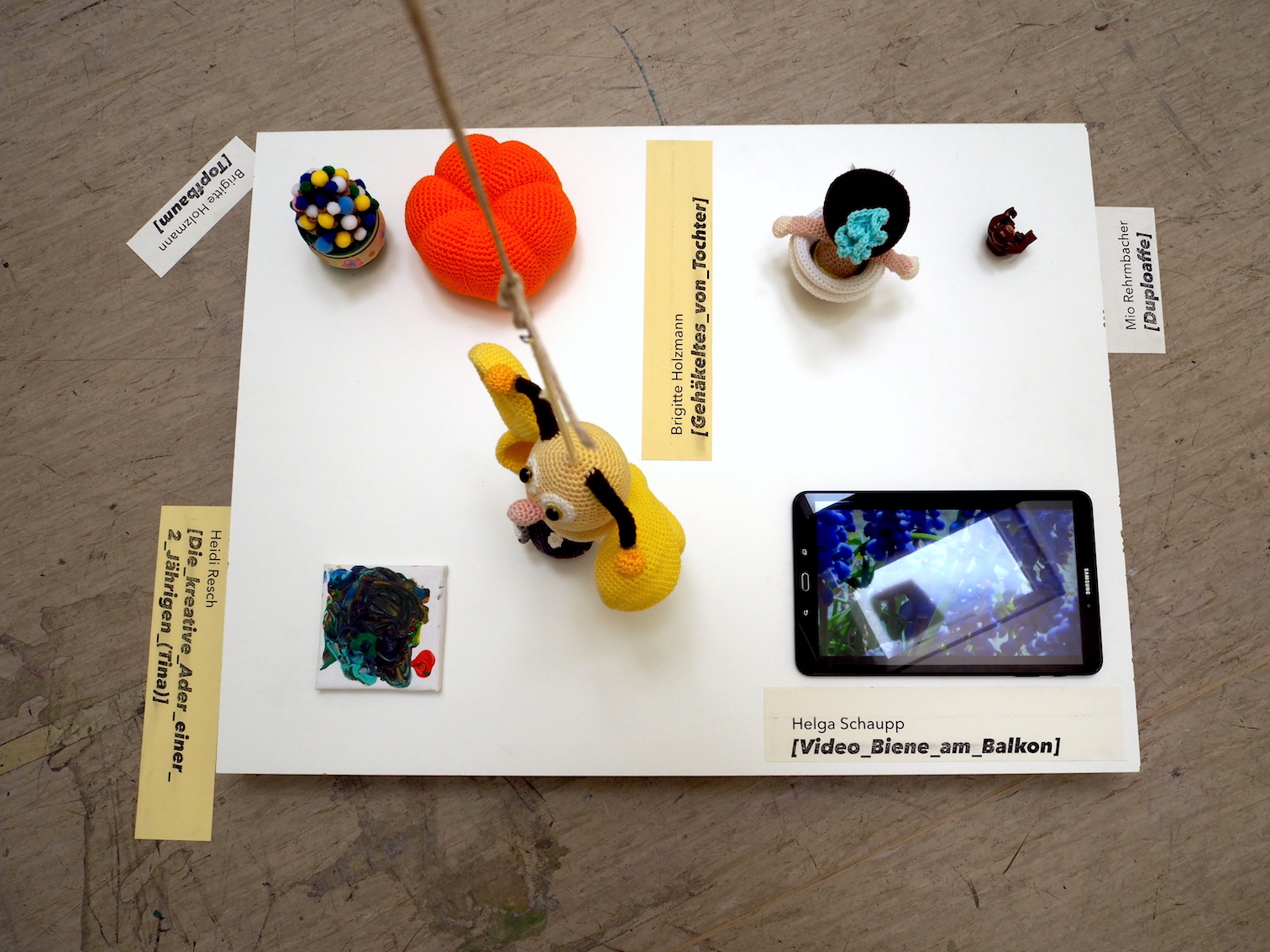 Im Zusammentragen und Präsentieren von Alltagsobjekten bzw. selbst Produziertem ging es darum, jene Prozesse und Materialitäten in den Mittelpunkt zu rücken, die vom Leben der Bewohner:innen und ihrem Bezug zum Ort erzählen. Eine gemeinschaftliche (Kunst-)Praxis bildet sich dabei aus dem vor Ort sein und in der Sichtbarmachung von gesellschaftlichen Handlungsräumen, die sich in diesem Prozess eröffnen.